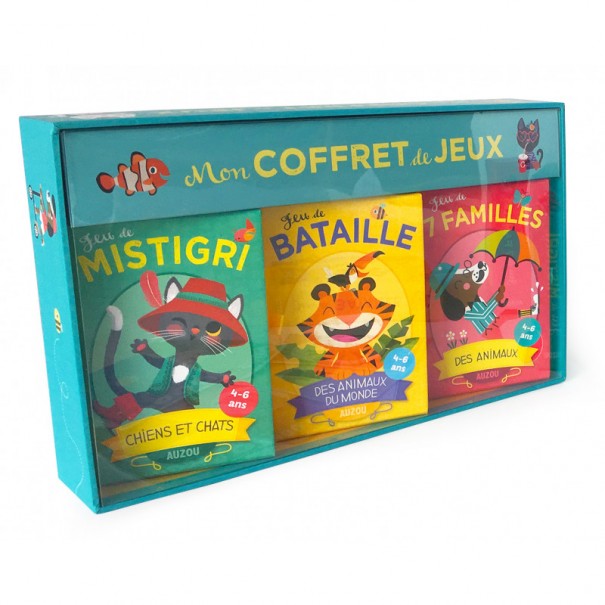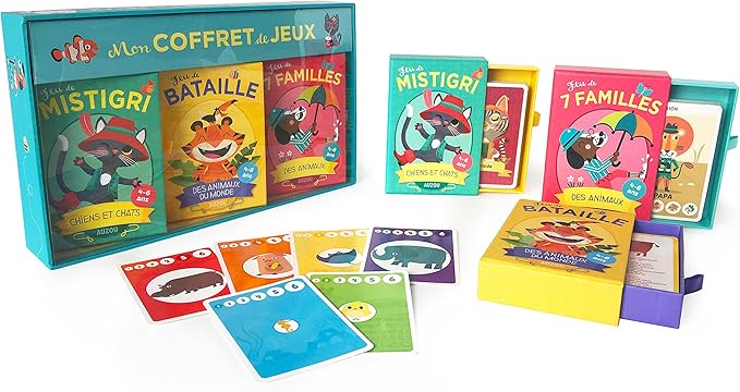 Coffret de 3 jeux de cartes Avec 3 jeux de cartes : 7 familles, Mistigri et Bataille !