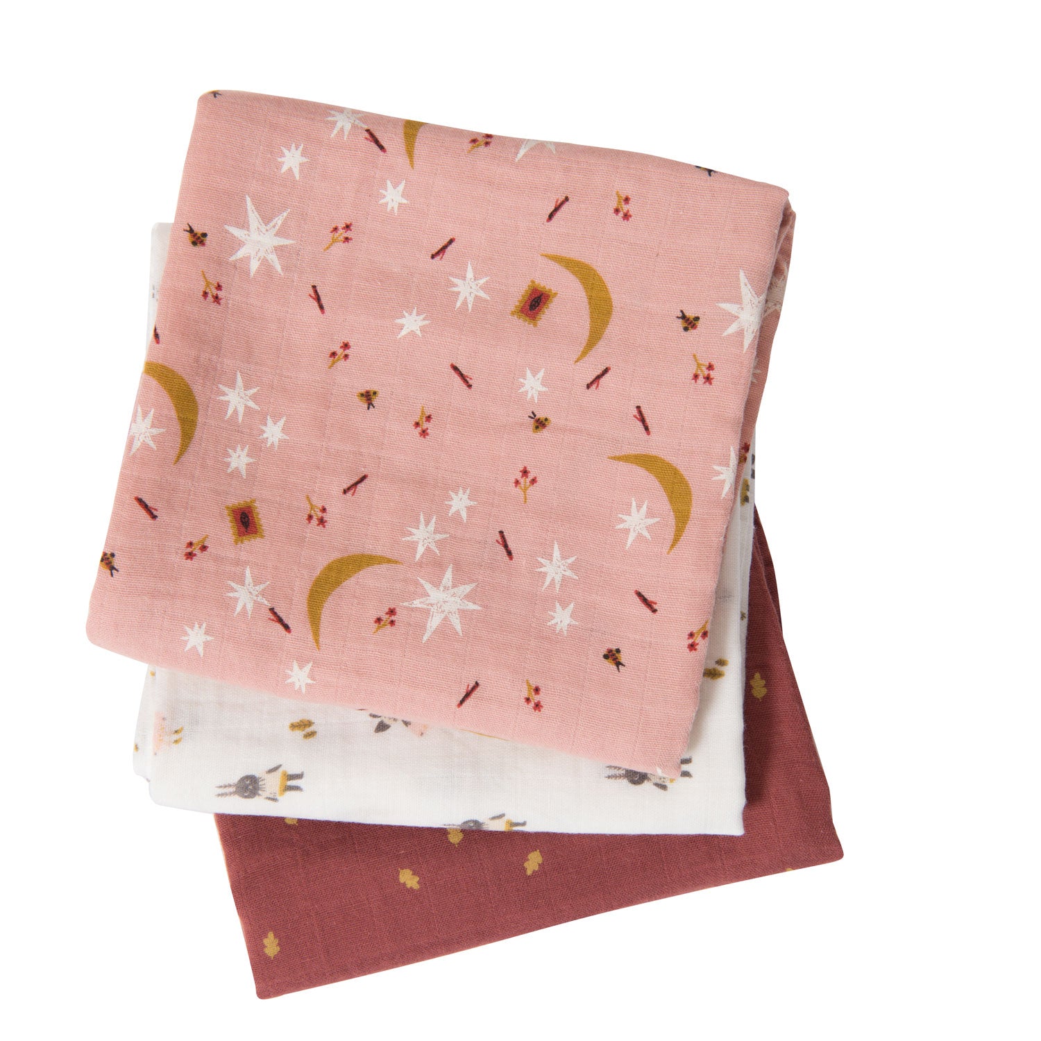 LOT DE 3 LANGES EN MOUSSELINE .TUSCANY ROSE MIX