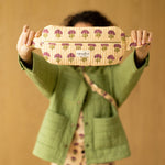• Le block-print indien consiste à imprimer à la main, grâce à des tampons taillés dans le bois, des motifs aux couleurs réalisées à partir d'un mélange de pigments naturels. Respectueux de l'environnement, ce tissu ne contient aucun produit chimique car les couleurs sont fixées grâce à un mélange d'eau et de vinaigre blanc. Cette confection manuelle peut entraîner certaines "irrégularités" dont nous aimons le charme ♡