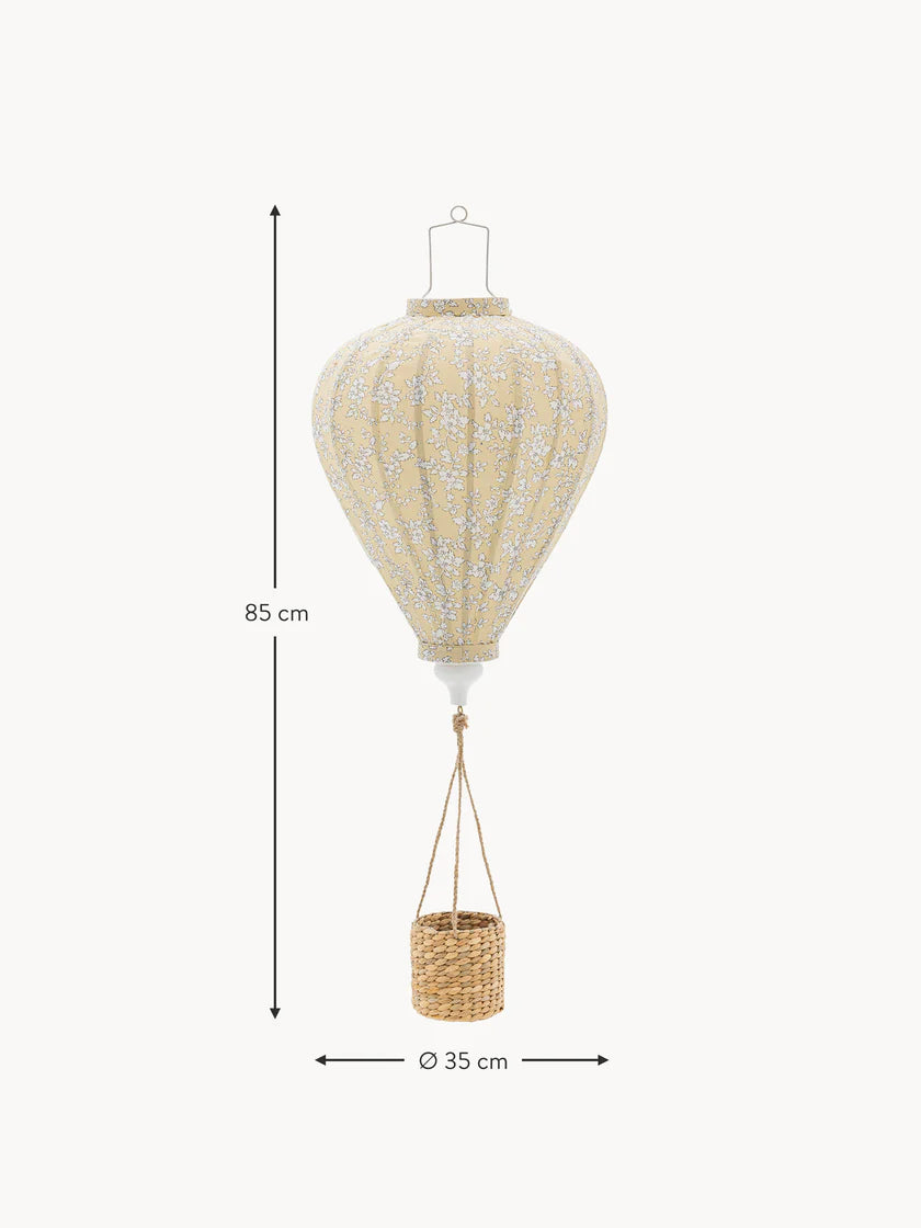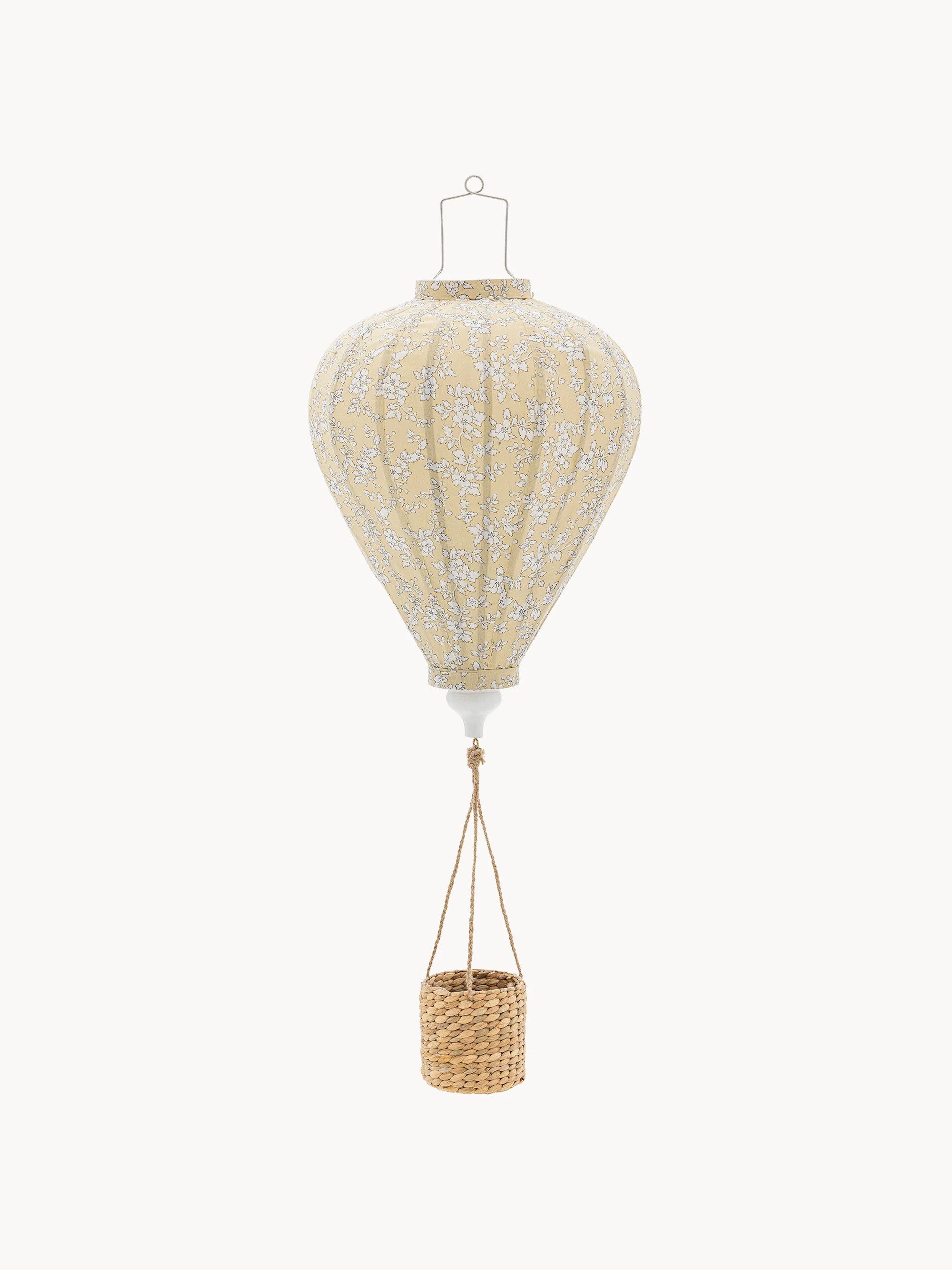 Confectionné en tissu polyester avec un motif floral délicat et un panier en osier, il apporte une touche chaleureuse et fantaisiste à la chambre des enfants. Il est possible d'ajouter une petite guirlande lumineuse à piles pour en faire une lampe douce et lumineuse.