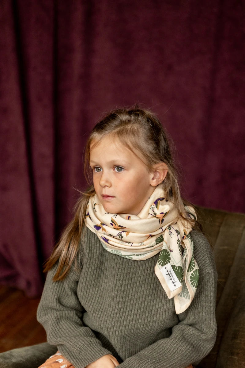 Le grand foulard Latika "Cerisier" Kaki deviendra vite un indispensable pour toute la famille. Confectionné en coton, il offre chaleur et douceur, et son imprimé iconique Cerisier ajoute une touche réconfortante à vos tenues.