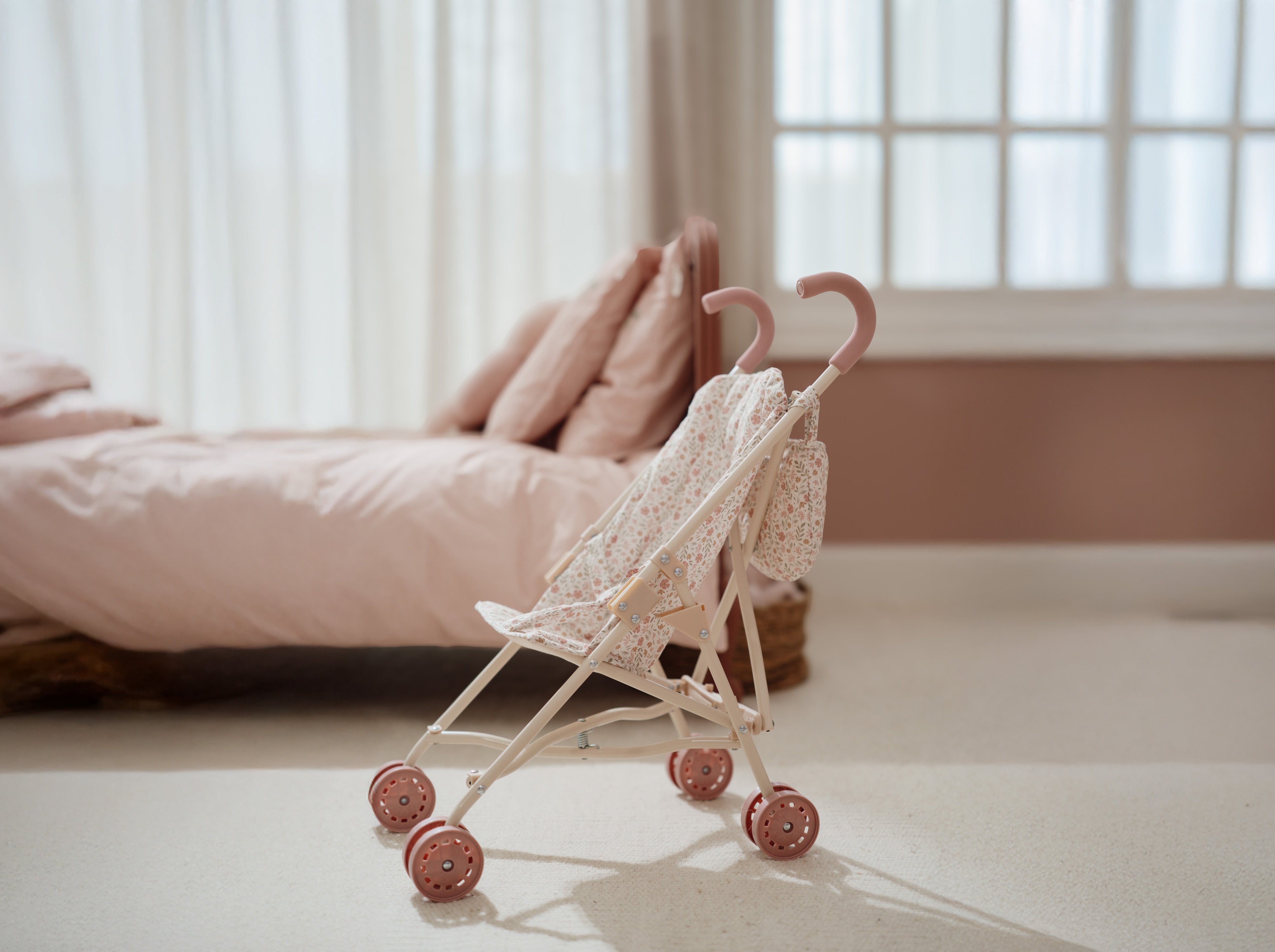 Poussette pour poupée – élégante, légère et fonctionnelle! Cette poussette pour poupée au design fleuri combine charme et praticité. Légère et dotée de poignées ergonomiques ainsi que de roues pivotantes, elle est facile à manœuvrer et offre une expérience de jeu réaliste. Son pliage compact facilite le rangement et le transport. Elle deviendra vite l’accessoire indispensable des petites mamans et papas en herbe. Idéale pour encourager le jeu de rôle, développer l’imagination et accompagner les enfants dans leurs univers de jeu.