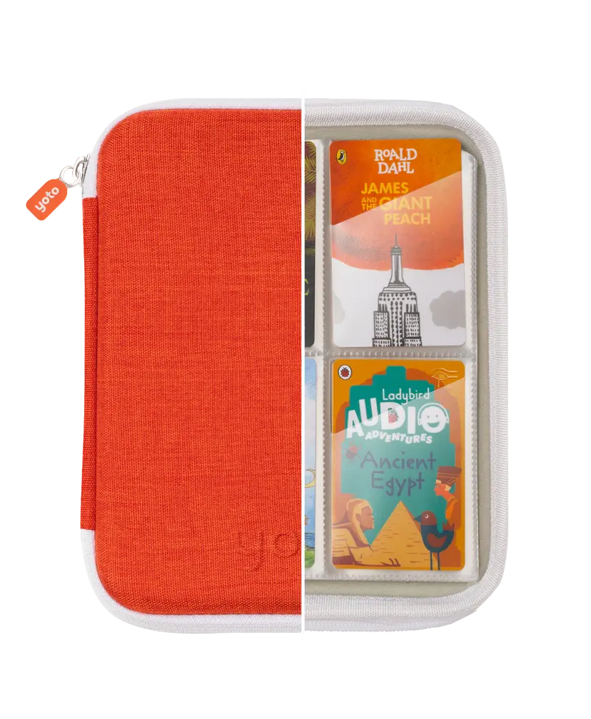 Ce porte-cartes souple peut contenir jusqu'à 64 cartes Yoto - c'est beaucoup d'écoute! Les petites poches sont inclinées pour faciliter le rangement des cartes par les petites mains et une simple fermeture à glissière permet de l'ouvrir et le fermer.