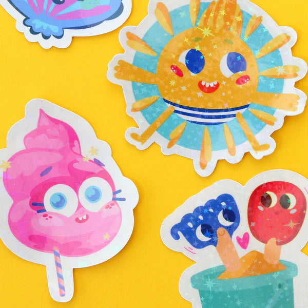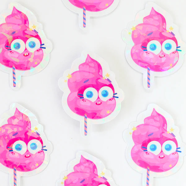 Offrez-vous de la douceur et de l'éclat avec ce ravissant autocollant de barbe à papa holographique à motif facetté! Cet autocollant fantaisiste présente un joli nuage de barbe à papa rose avec de grands yeux brillants, de petites étoiles et un charmant bâton rayé. Le laminage holographique ajoute un miroitement multidimensionnel unique, avec la lumière captant et réfléchissant sur ses surfaces géométriques pour créer un effet véritablement magique.