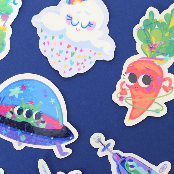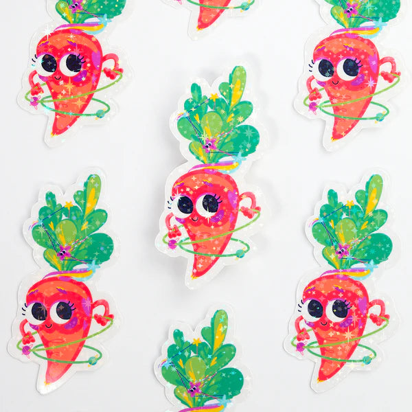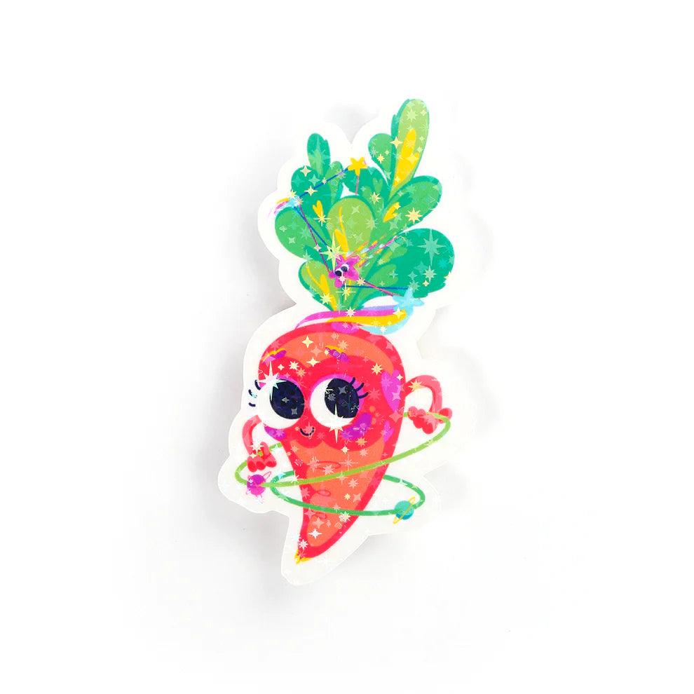 Idéal pour les amateurs de légumes, les fans de kawaii, les enfants et tous ceux qui aiment un peu d'éclat et de gentillesse. Apportez une touche de magie à votre journée avec cet autocollant holographique à motif d'étoiles unique et charmant.