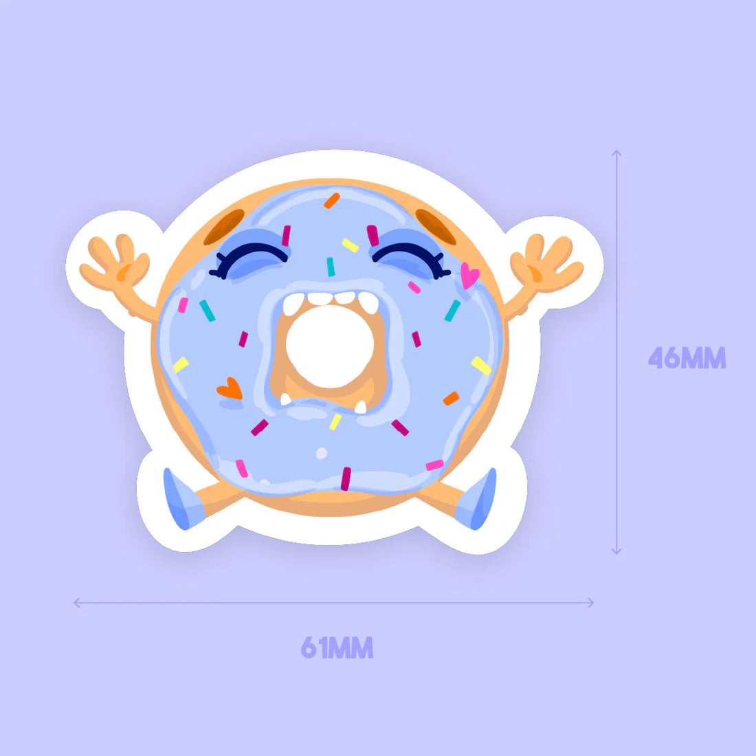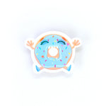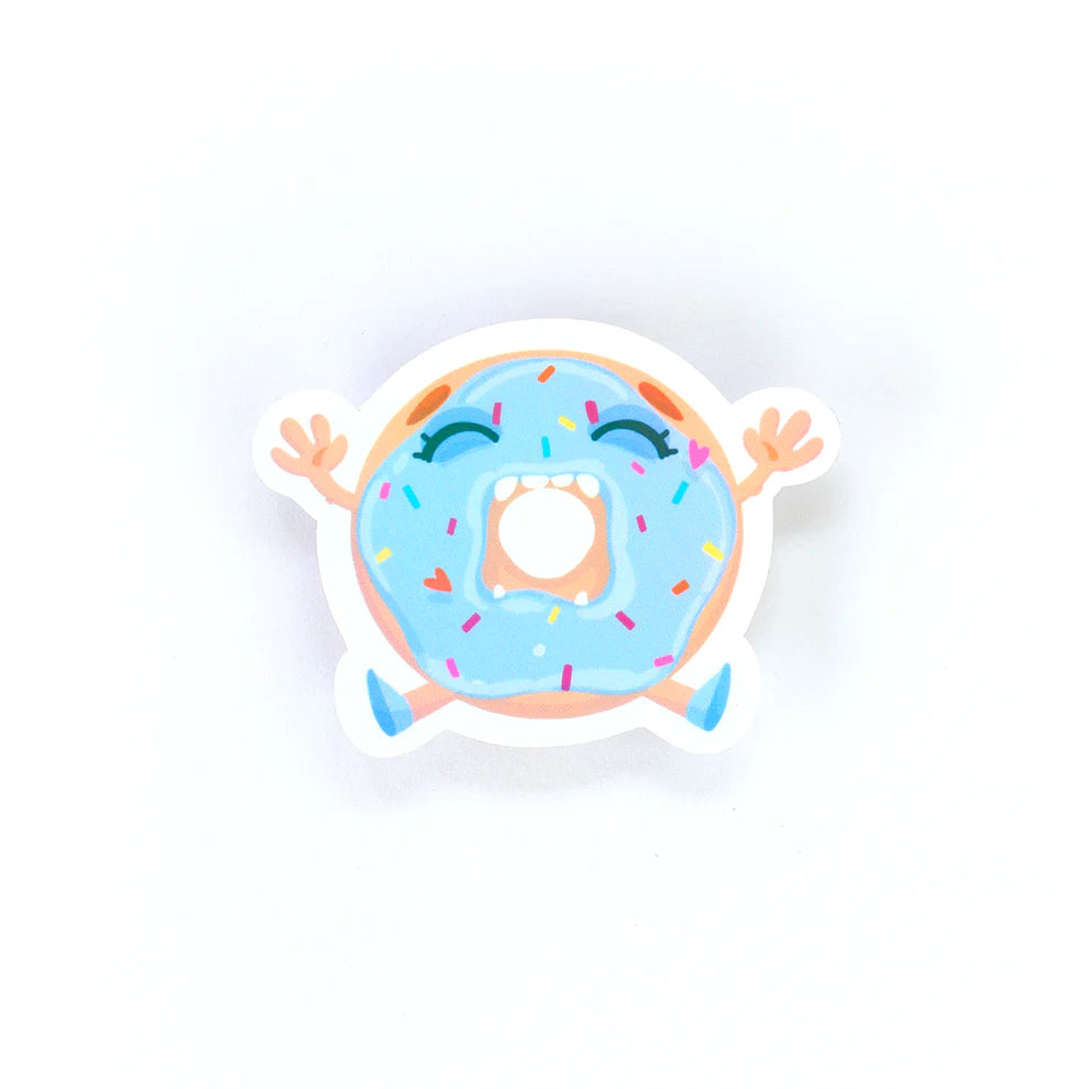 Attrapez ce beignet en plein bâillement ! Cet adorable autocollant présente un donut hilarant avec un visage doux et des pépites colorées, le tout animé par une finition holographique fascinante. Fabriqué en vinyle imperméable, il est parfait pour ajouter une touche d'humour et d'éclat à vos affaires. Mettez la main sur cet autocollant brillant en forme de donut et que les rires commencent !