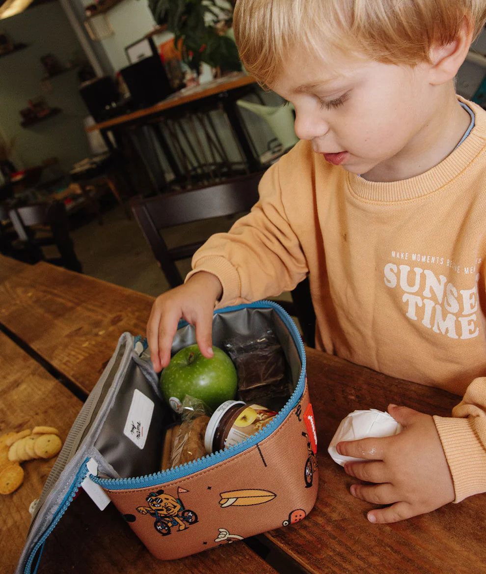 Le Sac Repas isotherme pour enfants, Mascots Ride, est pratique, coloré, robuste et léger. Parfait pour l'école, le sport, les voyages et les week-ends. Sac repas isotherme 100% conçu pour les enfants. Éco-responsable, en tissu 100% polyester recyclé. Ne le ratez pas.