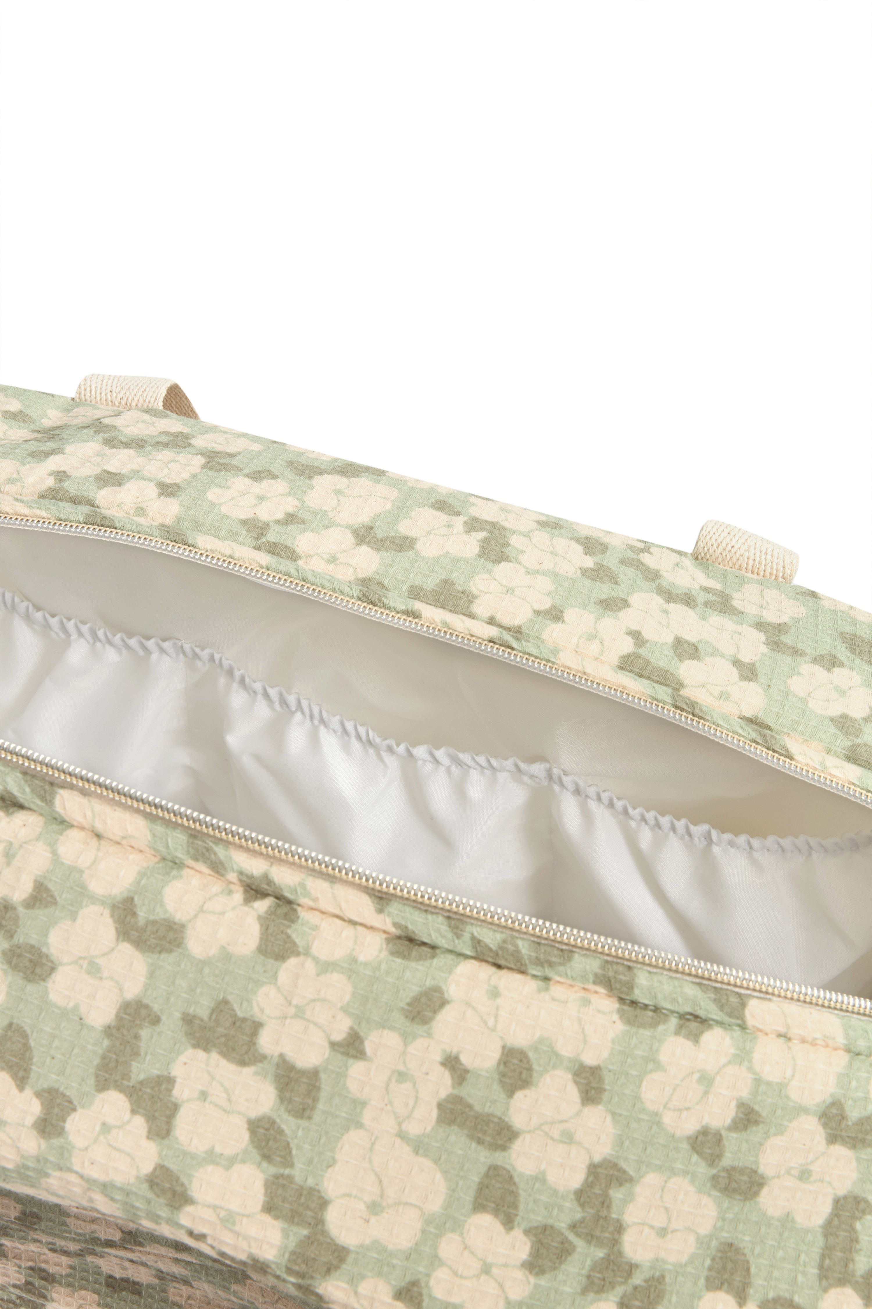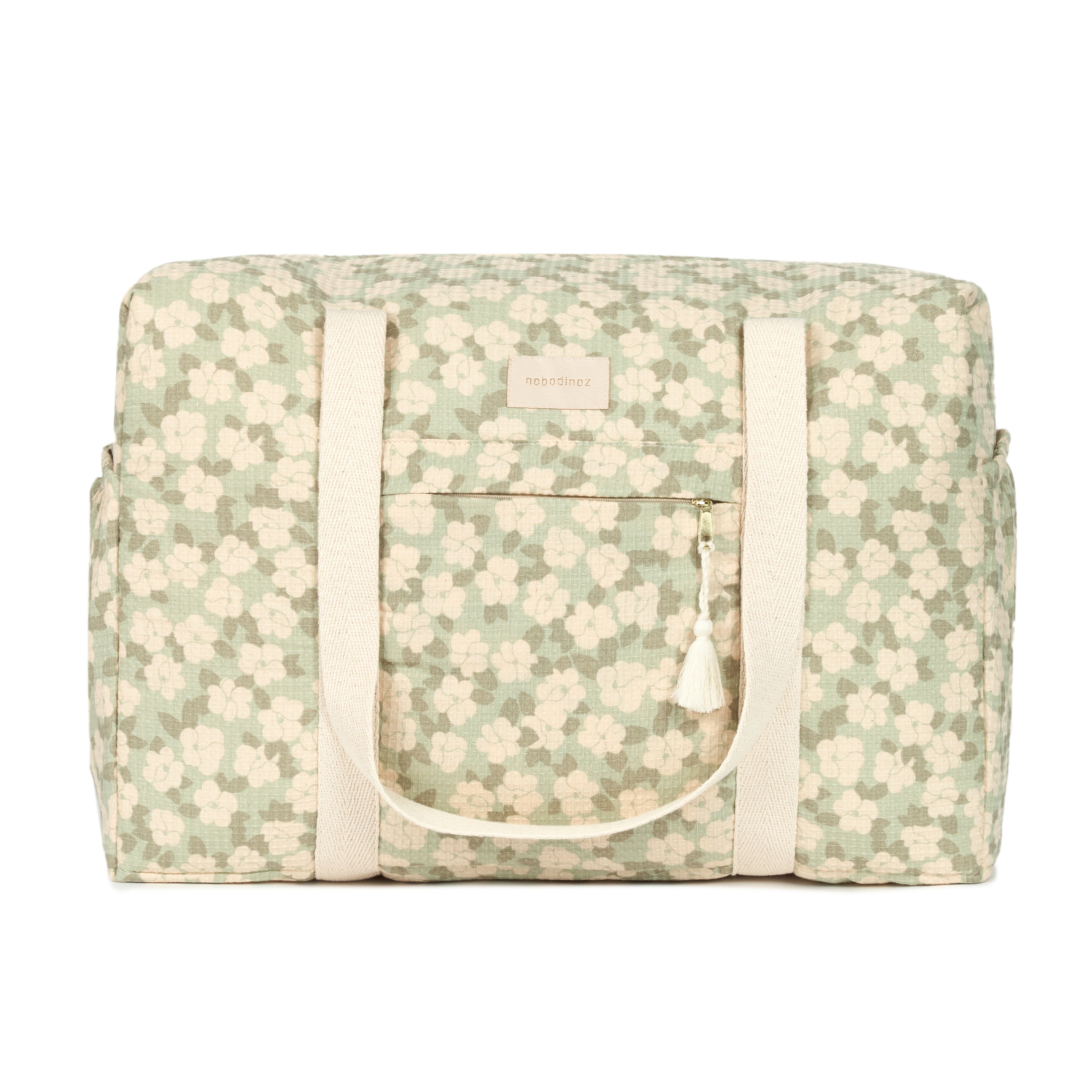 Grâce à son système de double anses en tresse de coton, vous pouvez le porter à la main, à l'épaule ou encore l'accrocher à la poussette pour plus de liberté.