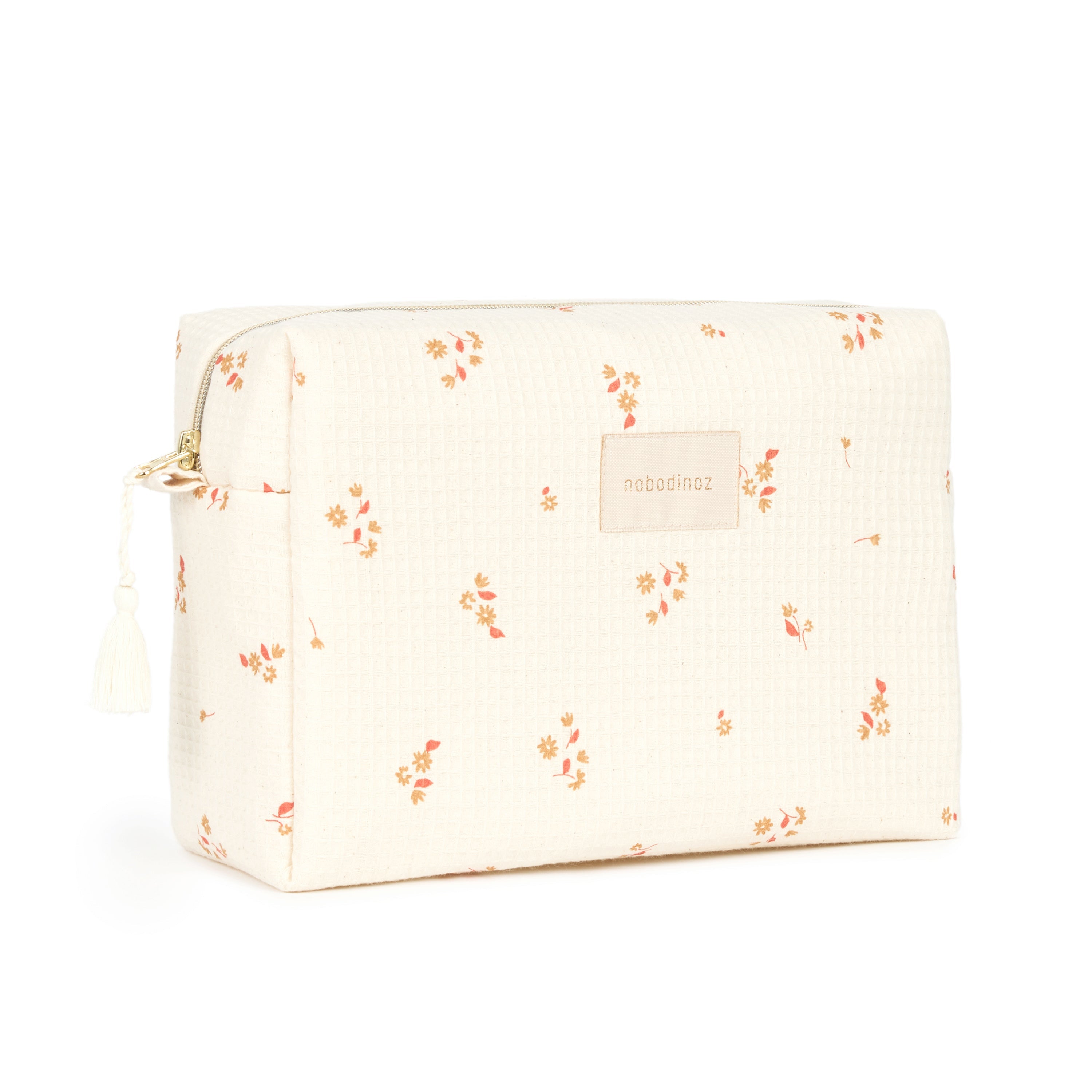 Large et pratique, la trousse de toilette Diva s'habille de nid d’abeille et d'une doublure intérieure imperméable. Mettez-y vos affaires de toilette ou autres accessoires de bébé.