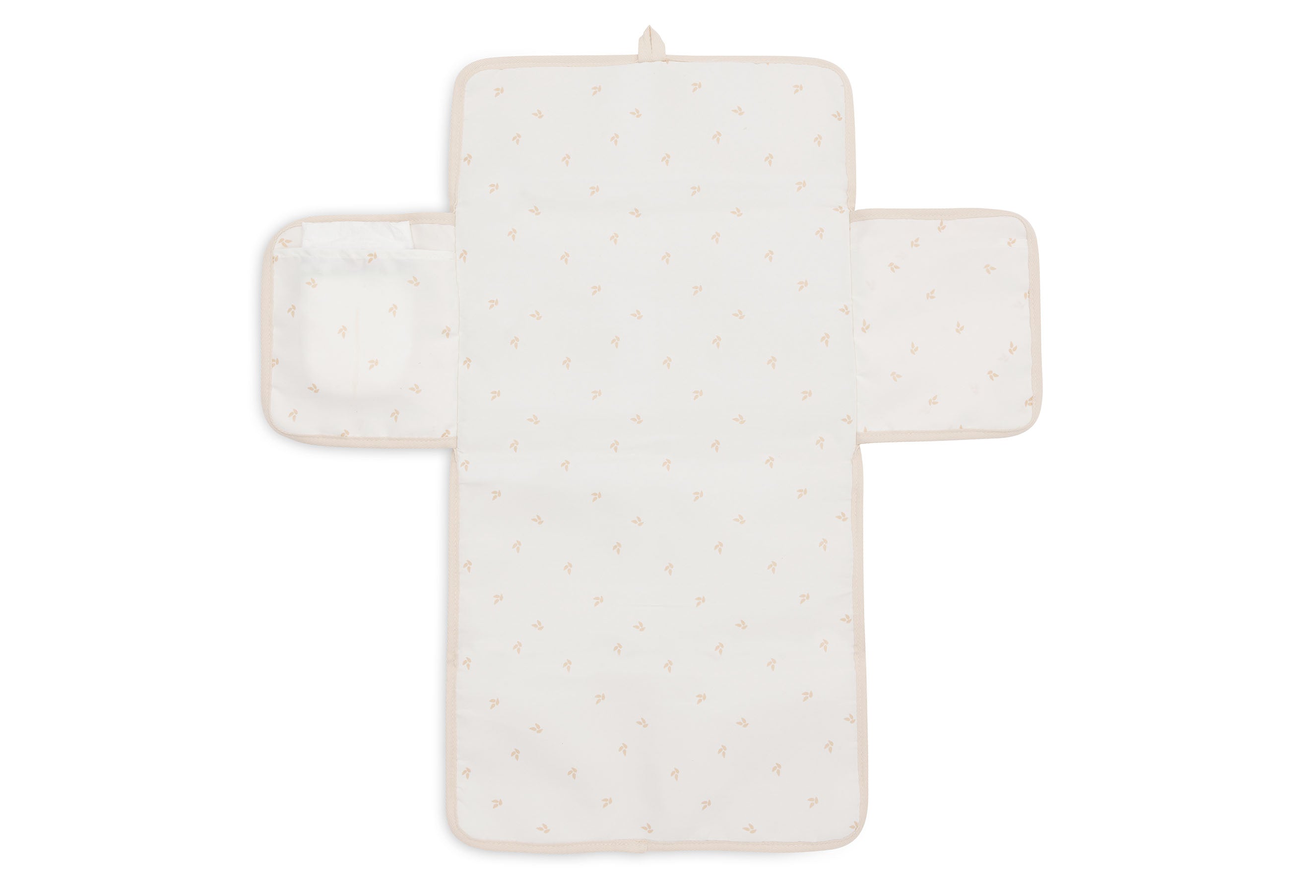 L'extérieur du tapis est fait d'un élégant sergé aspect lin, tandis que l'intérieur amovible est décoré d'un joli motif de harvest. Les deux sont superbes dans des tons naturels, ce qui leur confère un aspect calme et élégant. Gardez votre bébé confortable et changez-le avec style, où que vous soyez, grâce à notre tapis à langer nomade à pochettes pratique et chic.
