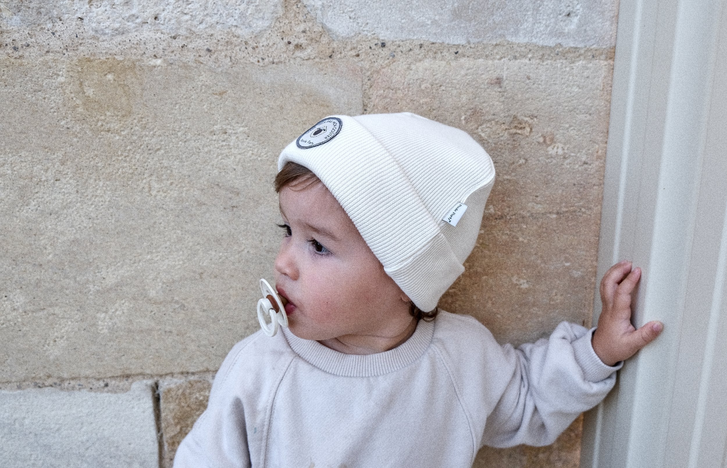 🌍 Écoresponsable et bio, le bonnet "Sheep-moi pas mon goûter" est l'accessoire parfait pour des journées fraîches tout en douceur ! Avec son adorable motif de mouton, ce bonnet écru garde la tête de vos petits au chaud… et leur goûter bien gardé ! 🐑🤍