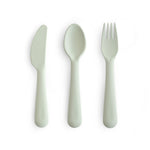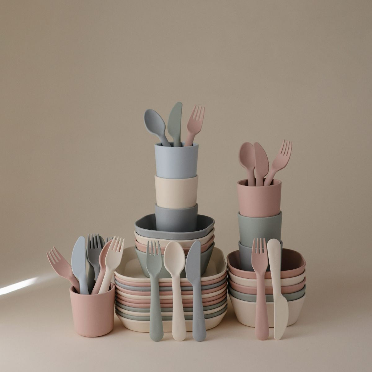 Un ensemble de couverts en plastique PP, à la fois élégant et pratique, de la marque Mushie, conçu spécialement pour les tout-petits.