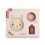 Coffret vaisselle en silicone, tendrement illustré aux couleurs de la collection pour manger comme les grands. Comprend bol, tasse à anses et assiette. Passe au lave-vaisselle
