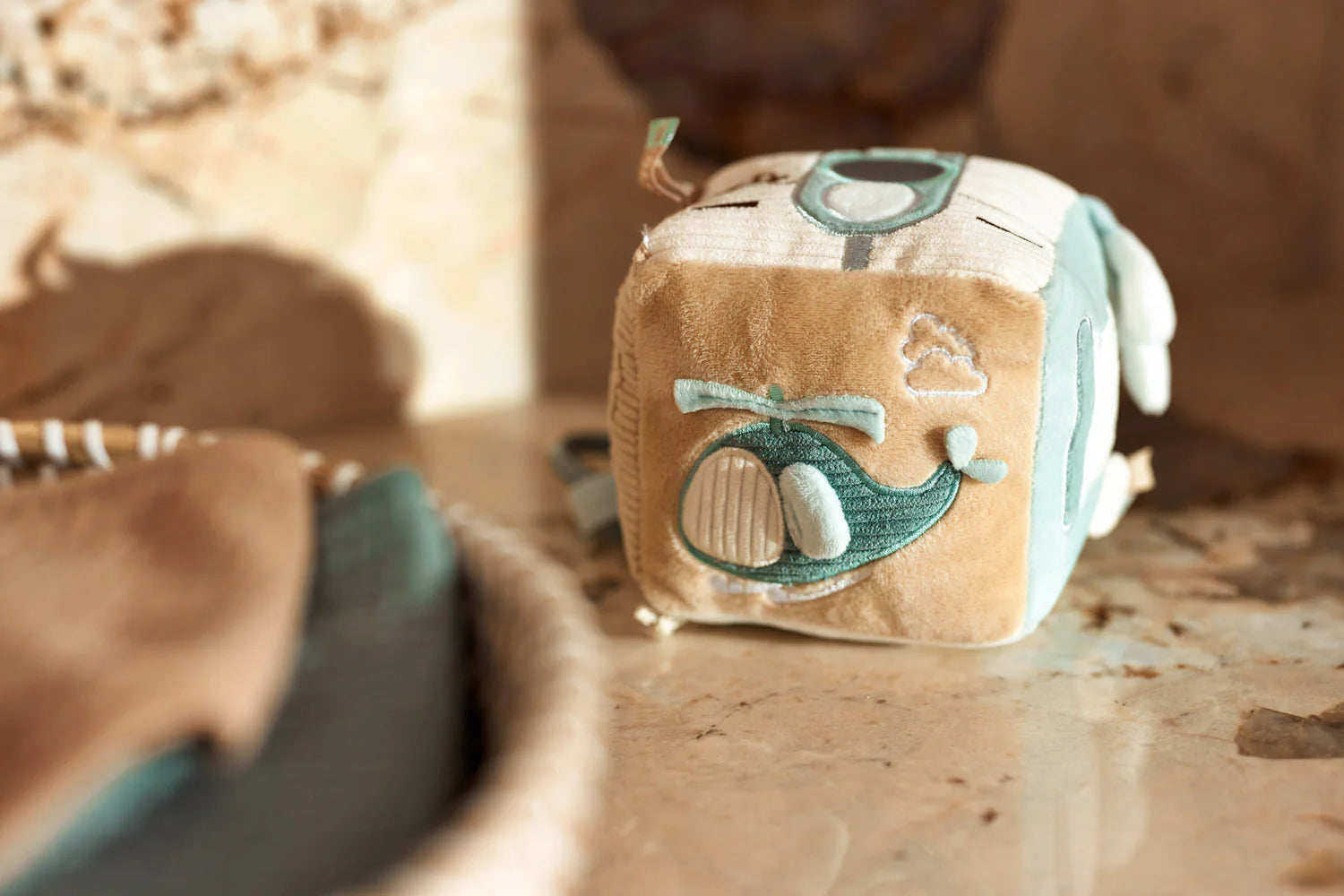 Ce cube d'activités aventureux sur le thème « On The Go » est parfait pour les petits curieux ! Dans les couleurs vives sea Green et Biscuit, ce cube offre un monde de découvertes. Vous y trouverez une adorable clé avec un bruit de craquement, un imprimé de pompe à essence et un feu de signalisation avec un miroir pour que votre petit s'émerveille. De plus, il y a bien d'autres éléments amusants avec lesquels jouer ! Ce cube d'activités stimule les sens et permet de s'amuser à l'infini !