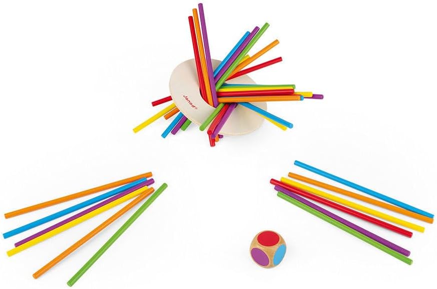 • BUT DU JEU : Retirer un maximum de bâtons colorés sans faire tomber le disque central ! Le dé indique au joueur quelle couleur retirer… il n'y a plus qu'à s'armer d'une bonne dose de concentration !