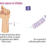 Le coffret comprend 11 perles phosphorescentes (étoiles, cœurs, lettres), des perles heishi et une boîte pour les ranger.