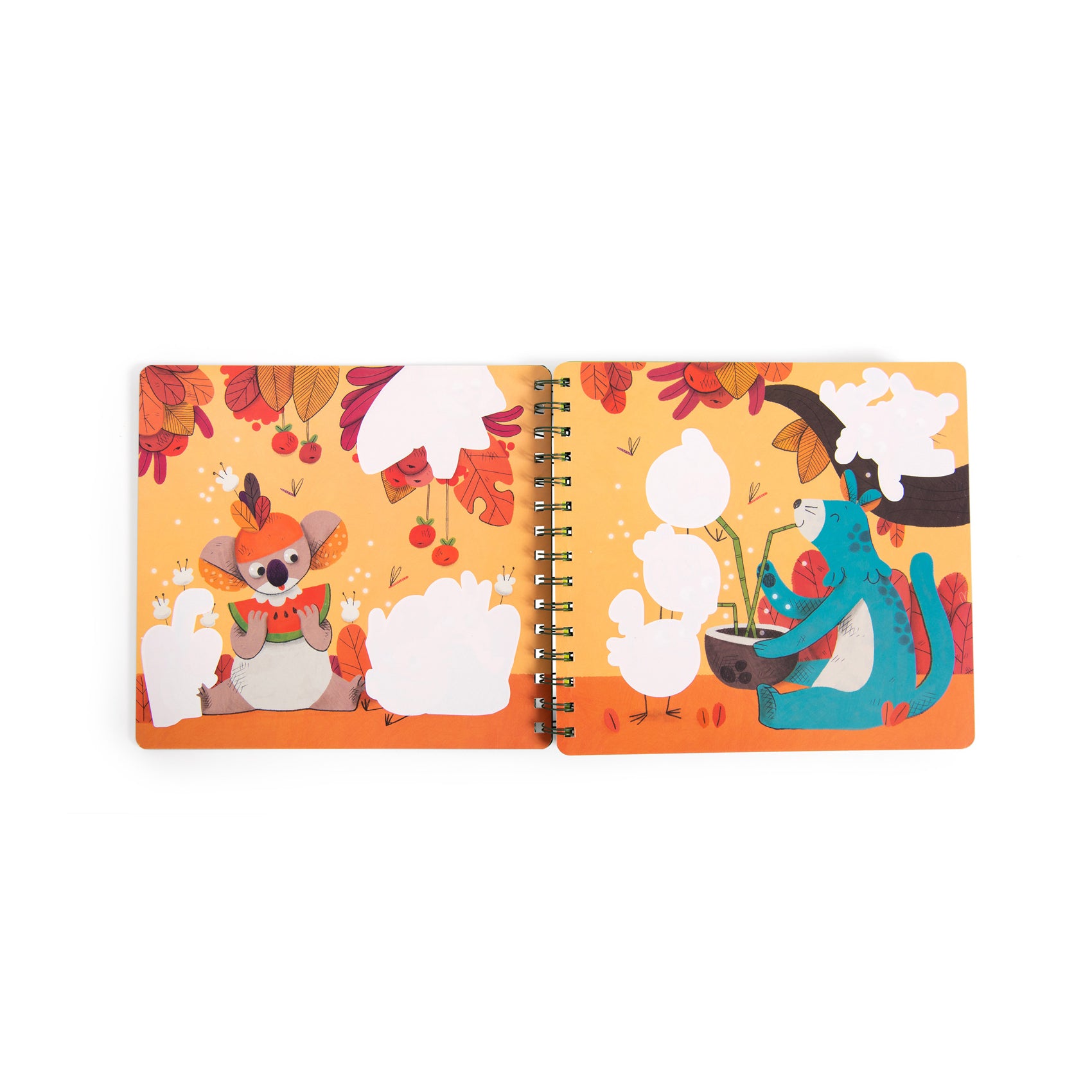 Grâce à un pinceau magique avec réservoir d'eau, peignez les zones blanches sur chaque page pour faire apparaître comme par magie les illustrations exotiques de la jungle ! Réutilisables, les dessins apparaissent puis disparaissent une fois secs !
