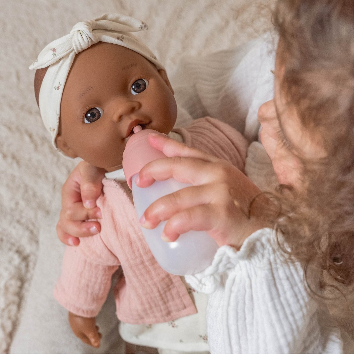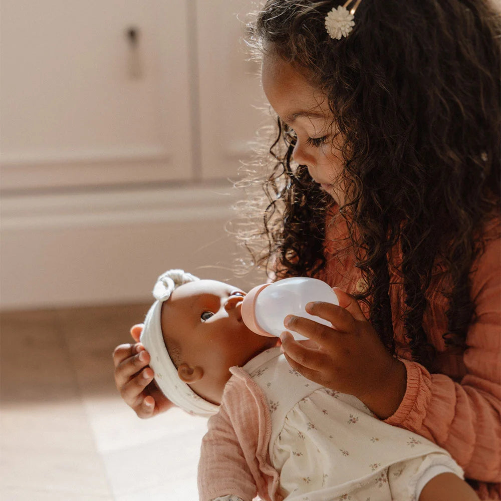 - Stimule la motricité fine : En changeant ses vêtements et en lui donnant son biberon, l’enfant développe ses compétences manuelles.